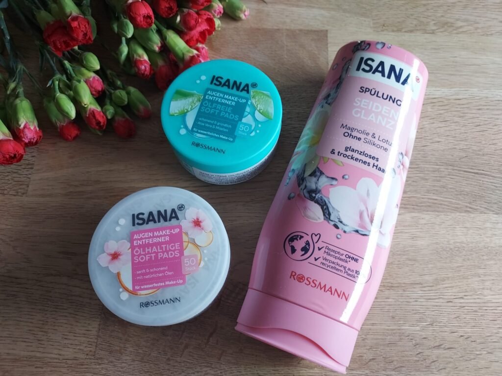 Na rohlíku jsem kupovala hlavně potraviny, ale přihodila jsem do košíku i nějaké kosmetické kousky, jelikož mi doma pár věcí došlo. Jedná se o značku Isana a vybrala jsem si jejich maxi vatové tamponky, tekutá mýdla, napuštěné odličovací tamponky v dóze a kondicionér na vlasy.
